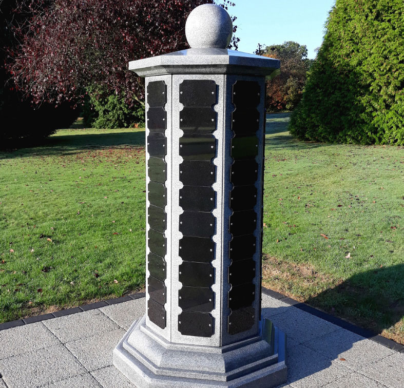 The barbican is a most welcome addition to our memorialisation within the grounds of the crematorium. Distinct by design, the 80 granite plaques offer the bereaved bespoke deigns symbolising a personal tribute to a loved one.