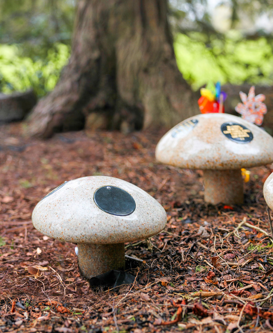 Each of the Mushrooms comprises of a number of individual circular granite plaques which can be inscribed to commemorate the memory of a child.